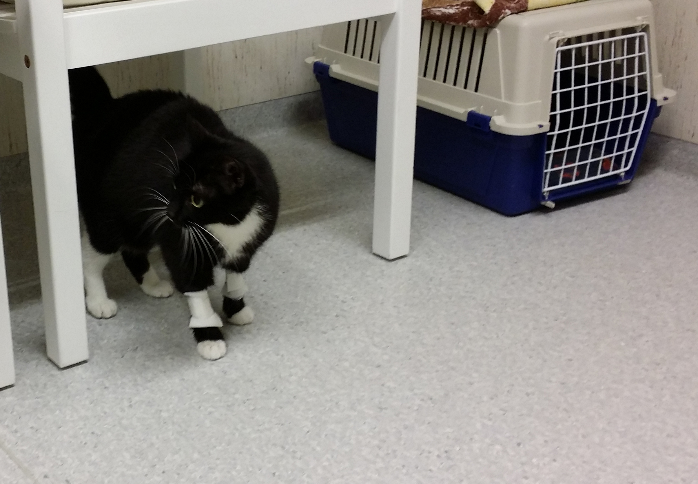 För drygt en vecka sedan märkte vi att hon började bete sig konstigt vid sina besök på kattlådan. Hon gick väldigt ofta på lådan och det verkade inte komma någon större mängd kiss då hon försökte – snarare bara en droppe eller så. Dessutom ”åkte” hon på ändan efter besöken. Det blev dags att åka till veterinären här i Västerås och på det följde besök på Djursjukhuset i Strömsholm.