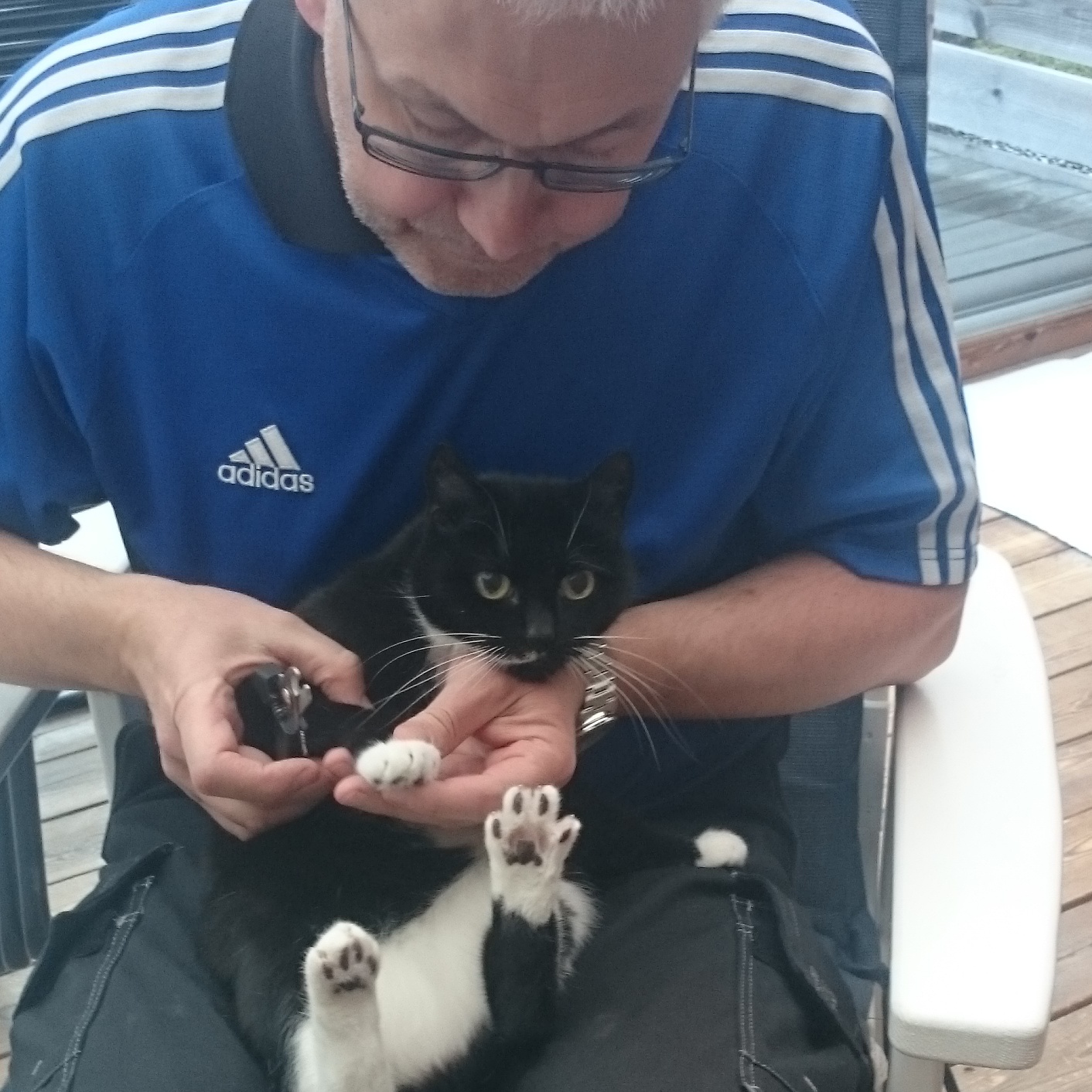 Vår äldsta katt Chips som nu är 12½ år gammal har verkligen varit ”husses” katt. Hon har alltid sovit hos mig på nätterna och gärna legat hos mig i fåtöljen när jag tittat på TV. Marie har knappt fått klappa henne under alla dessa år.